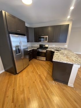Large 3 bedroom 2 bath Unit with Newly rehabbed kitchen with stainless steel appliances and granite tops. Unit has hardwood floors, two full baths, with one en-suite, washer dryer in unit and one off street parking spot. Large front porch and back porch. Central air and high efficiency furnace.Ã?Â